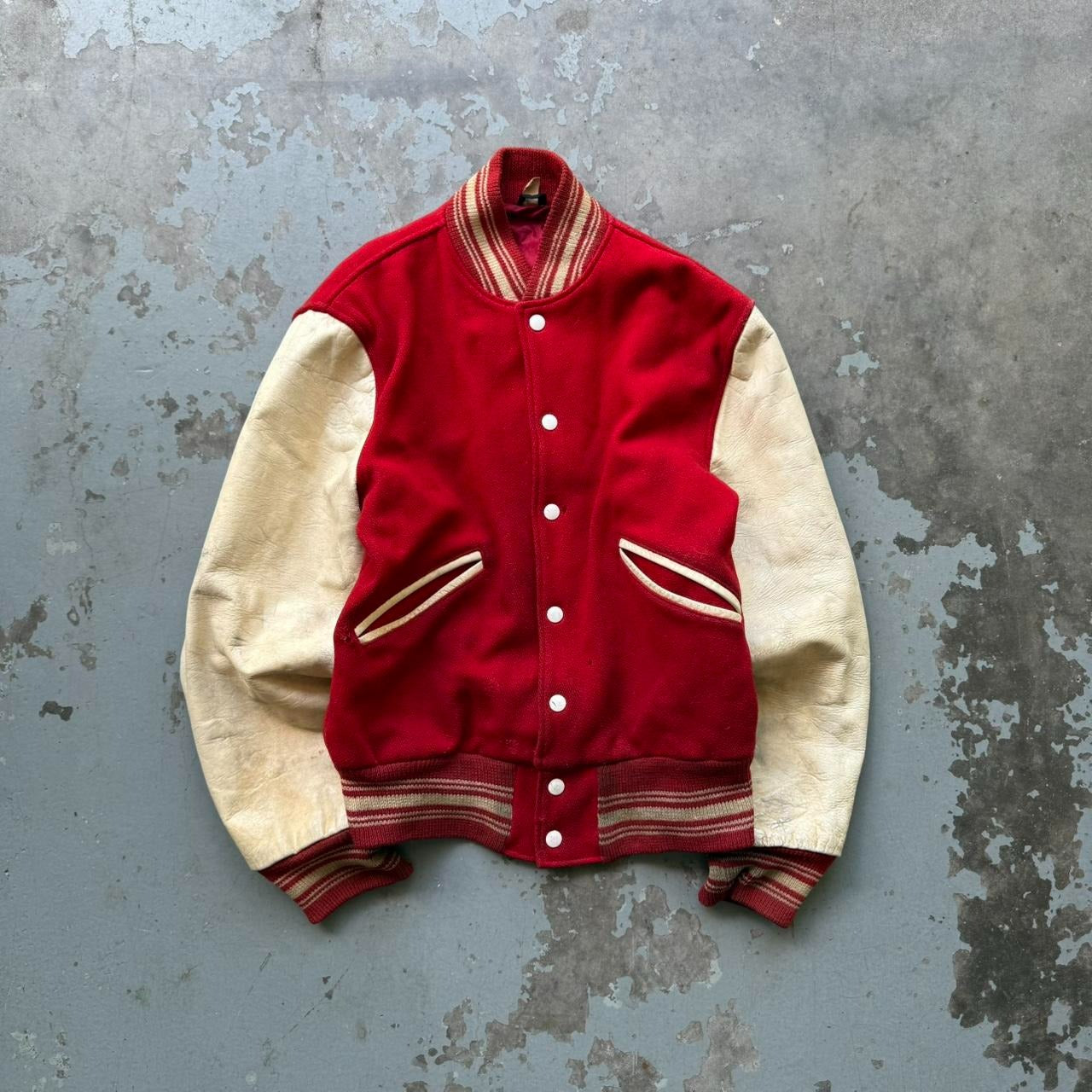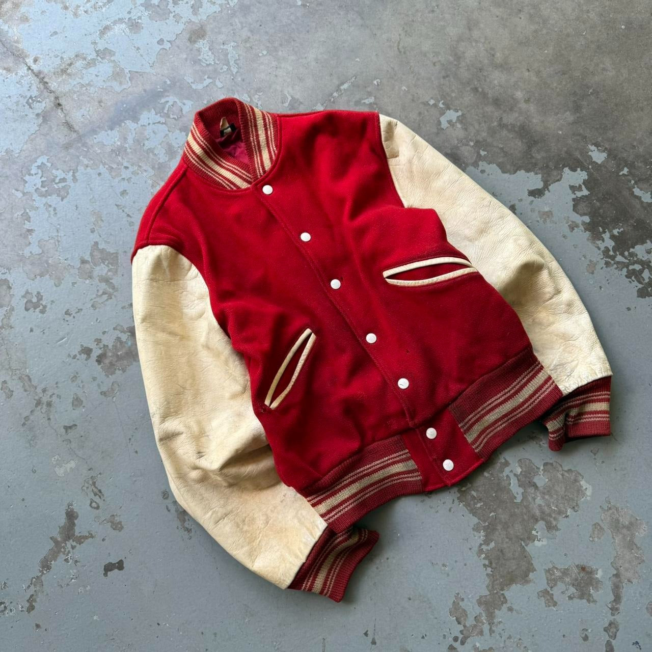 1960’s True Vintage Butwin Red Blank Genuine Cowhide Leather Letterman Jacket